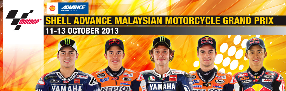 Malaysia hosts Round 15 of 18-leg MotoGP World Championship from October 11 to 13, 2013. See the MotoGP idols such as Valentino Rossi, Jorge Lorenzo, Marc Marques, Pol Espargaro, Scott Redding and Zulfahmi Khairuddin fighting each other live on track for champions title.